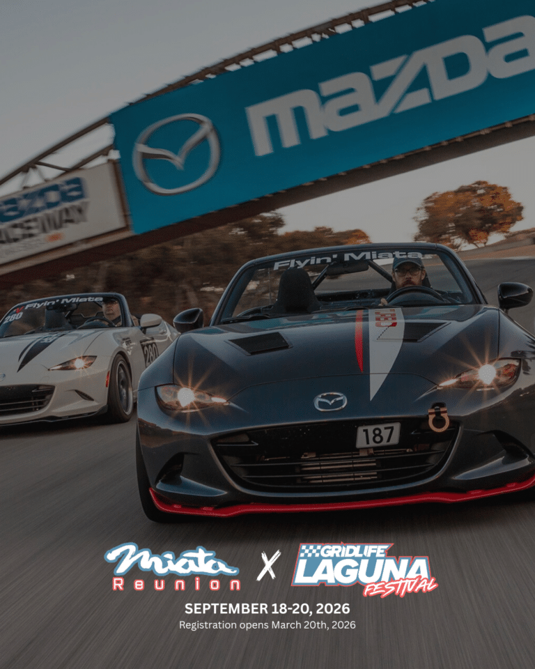 The great news? We’re partnering with Gridlife Laguna Festival! This motorsports, car culture and music festival is already a high energy event, and now it’s going to be full of Miatas. Miata Reunion is commanding a massive, exclusive zone above Turn 1, a sanctuary separate from the main crowds!